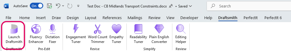 To start Draftsmith, open Word and the document you want to use it with.