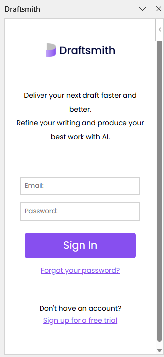 If this is your first time using Draftsmith, you may be prompted to log in to your Draftsmith account.