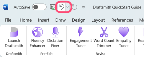 If you ever want to undo a change made with Draftsmith, you don’t need to look for an Undo button. Simply use the one in Word.