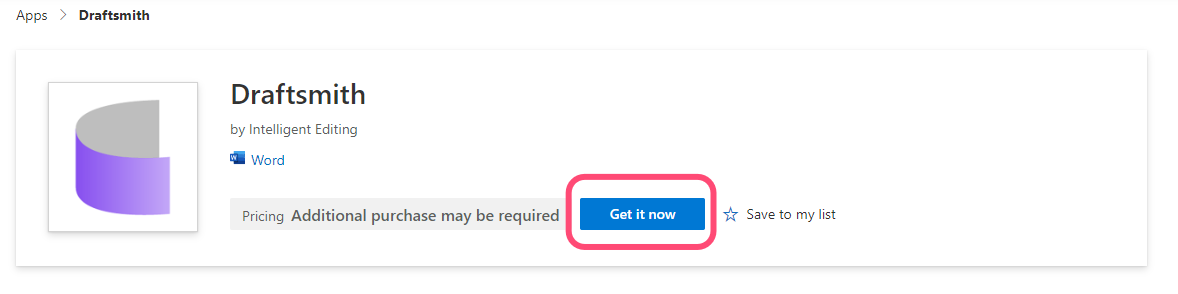 Click here to see Draftsmith on AppSource, then click ‘Get It Now’.